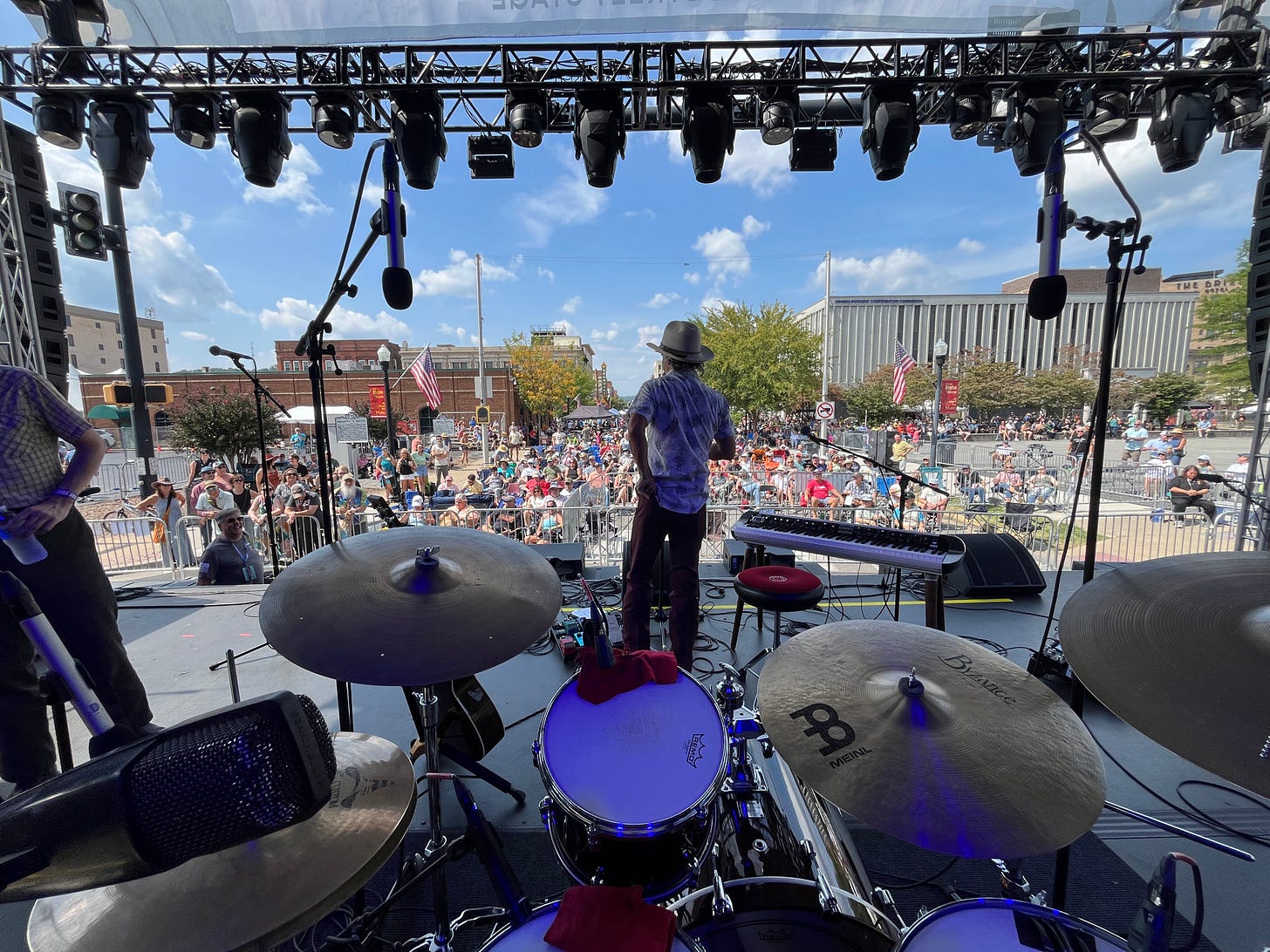 Shortly after moving to Tennessee in the second half of 2019, Care and I had the opportunity to attend a music festival in Bristol, TN/VA (depending on which side of the street you’re standing on). I had heard of The Black Lillies while in college in New Orleans, and knew as soon as I saw them on the schedule that I wanted to get us to the gig for an enjoyable afternoon. Fast-forward but a mere six years later, and I found myself behind a drum kit on the same stage, on the same day in September, with some of those same dudes. (Samuel had a shirt on this time.) Not every day working in the music industry has such a clearly-defined stepping stone towards more “success.” (And to be honest, there are still plenty of days where I wake up and question why this music-career game is still something I play.) To have that physical manifestation of upward motion in my work—now that was a really fun experience.